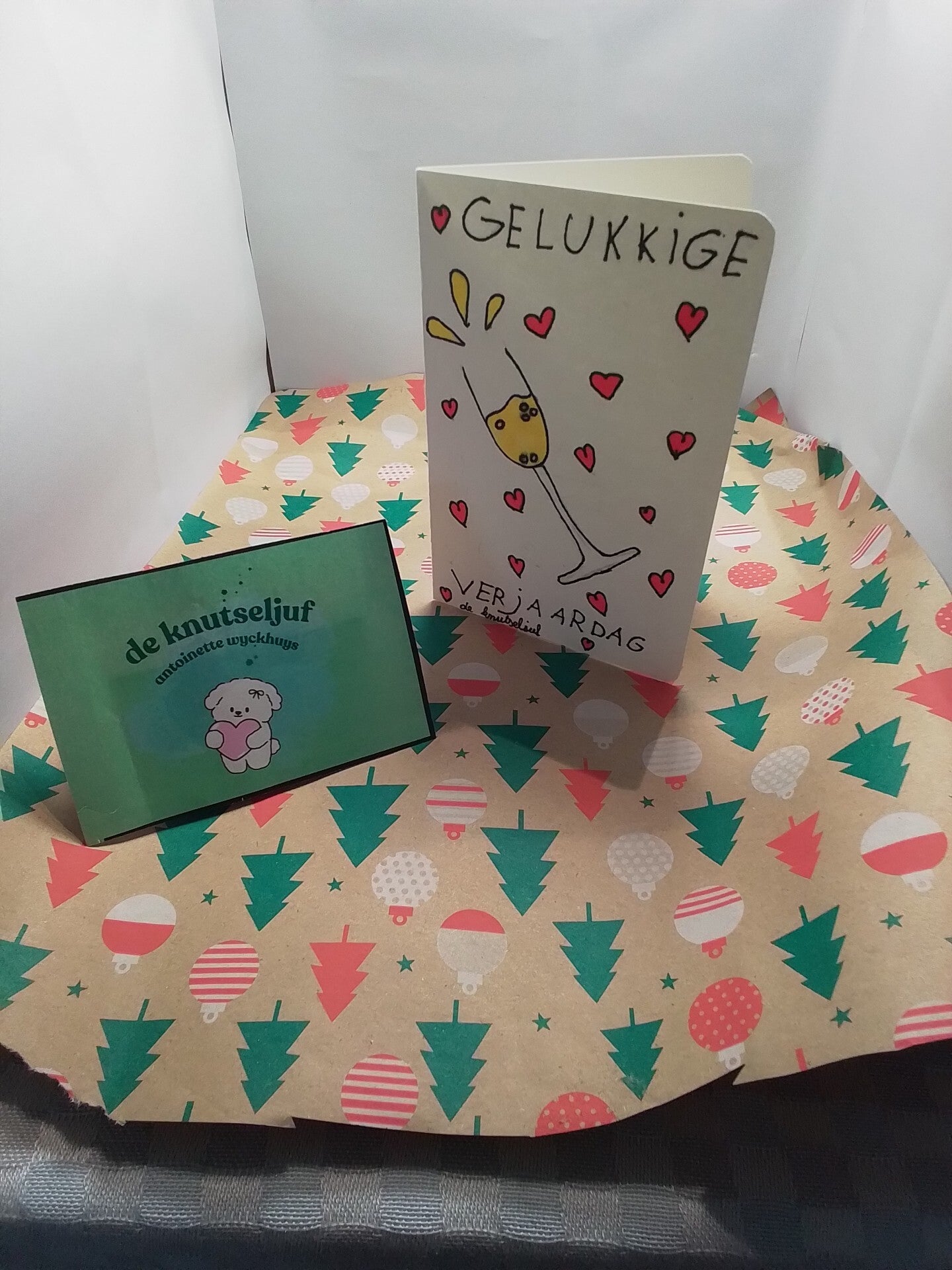 2 kaarten handgemaakt . Met schets papier gemaakt van de knutseljuf.